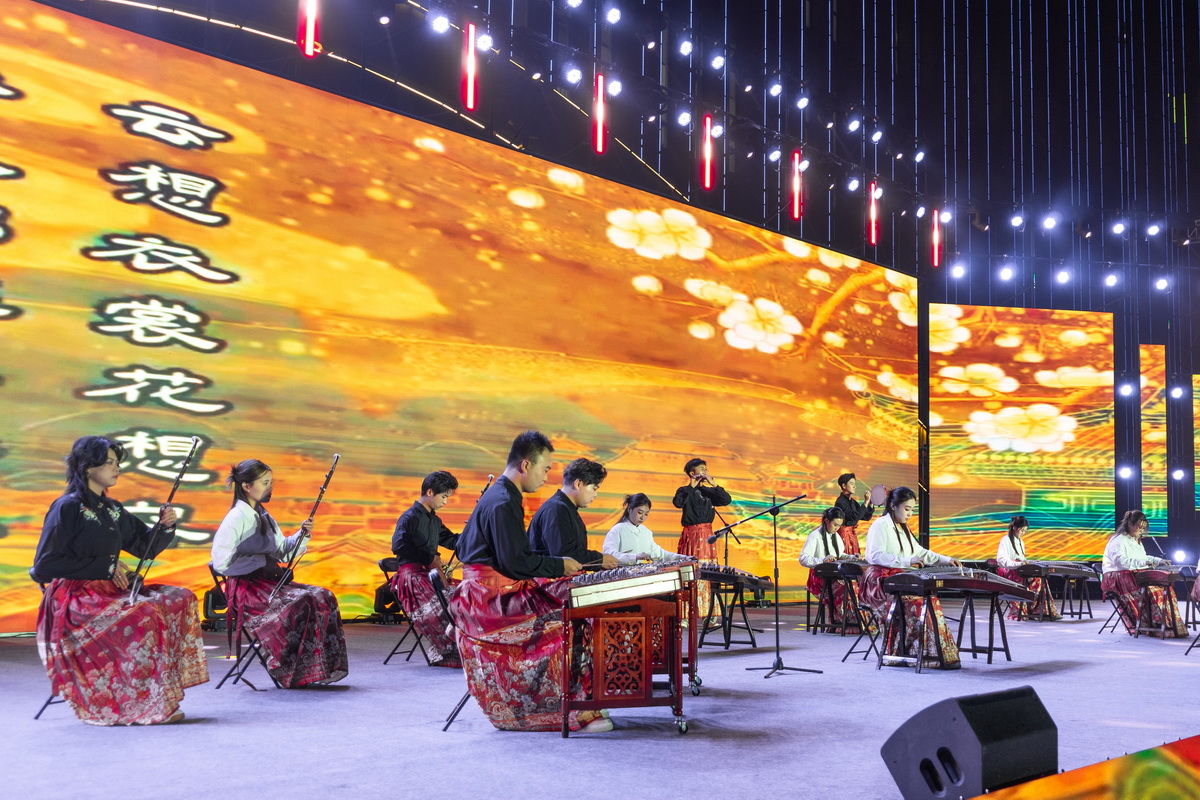 晚会以文化遗产与艺术学院选送的器乐合奏《盛世国乐》开篇,悠扬婉转的旋律与激昂澎湃的节奏交织,既展现了中华优秀传统器乐文化的独特魅力,也以恢弘气势点燃全场氛围,为晚会奠定高雅庄重、热烈喜庆的基调,拉开了此次双节同庆、喜迎新生活动的序幕。