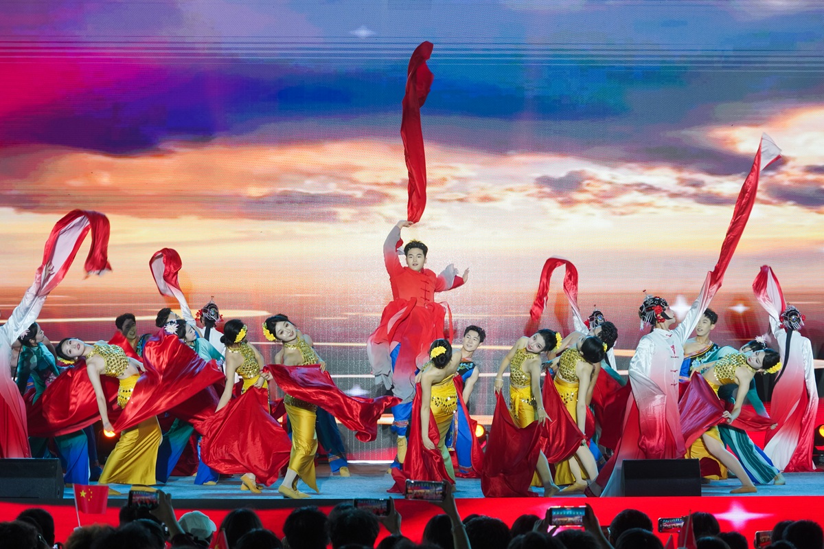正值国庆、中秋双节交汇之际,为热烈庆祝中华人民共和国成立76周年,迎接2025级新同学融入山电大家庭,9月29日晚,我校“‘芯’火赓续·筑梦华章”贺国庆·庆中秋·迎新生文艺晚会在学校图书馆东广场举行。校领导扈新起、任利成、吉守斌、杨正民、孙桓五出席晚会,各职能部门、各学院负责同志,新生辅导员及2025级全体新生共3500余人现场观看演出,共同畅享兼具思想性、艺术性与观赏性的文化盛宴。