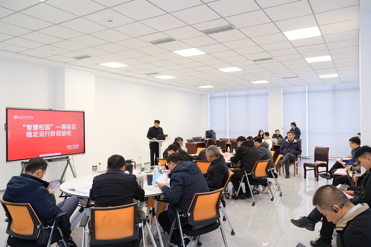 会上,信管中心负责人孙左奇对我校当前智慧校园建设及运行情况作了简要汇报;项目承建方就智慧校园建设一期所涵盖的硬件及软件子项目建设情况进行了系统介绍,并展示其主要功能;科准检测科技研究院(山西)有限公司汇报了项目各模块检测达标情况;评审专家组以严谨、专业的态度,认真审阅项目资料并进行质询,同时向校方询问项目成果在实际应用及运行过程中的具体情况。经认真审查与评估,评审专家组认为我校与银行合作的项目符合建设需求,并同意项目通过验收。同时,评审专家从继续优化完善系统功能、问题整改、数据源数据标准及对接、做好培训和后期运维等方面提出意见和建议。