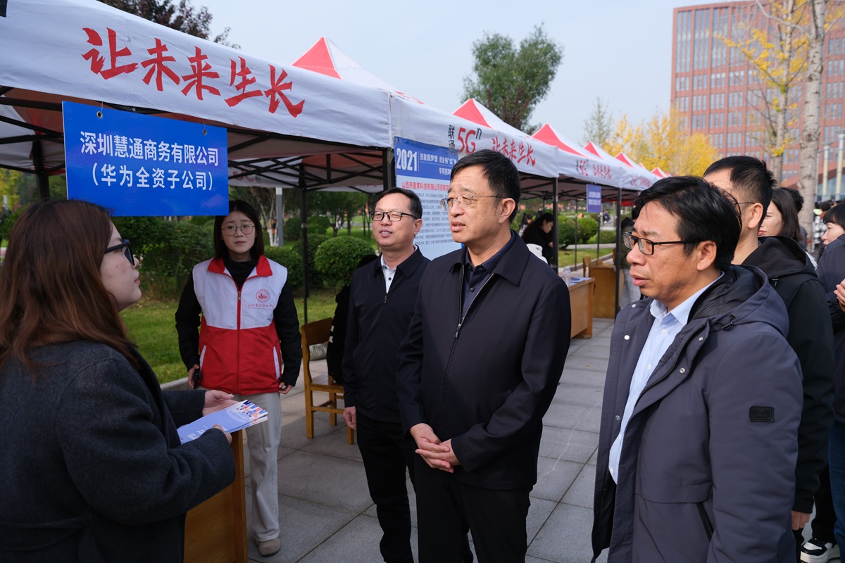 校党委书记扈新起,校党委委员、副校长贾建峰,临汾市人社局党组书记、局长黄海华现场指导招聘会工作