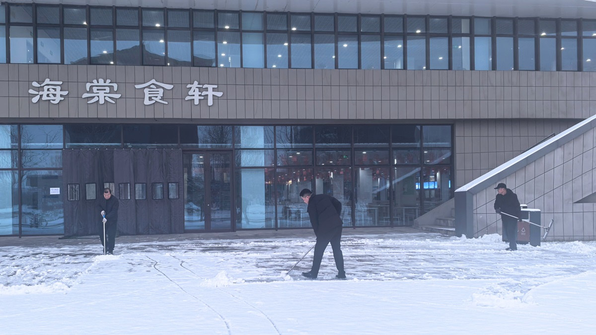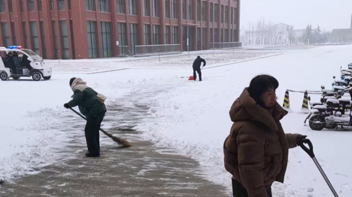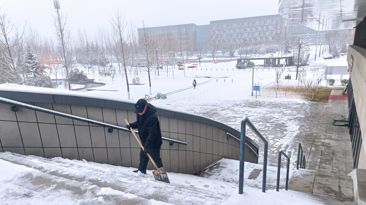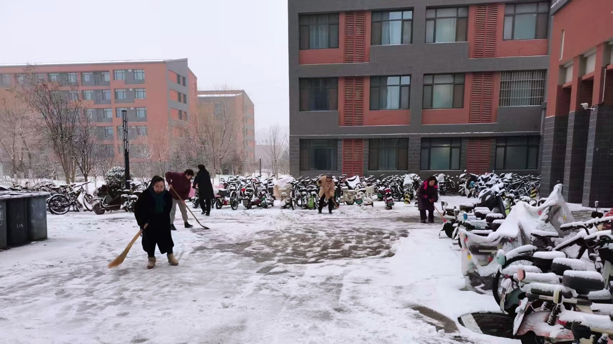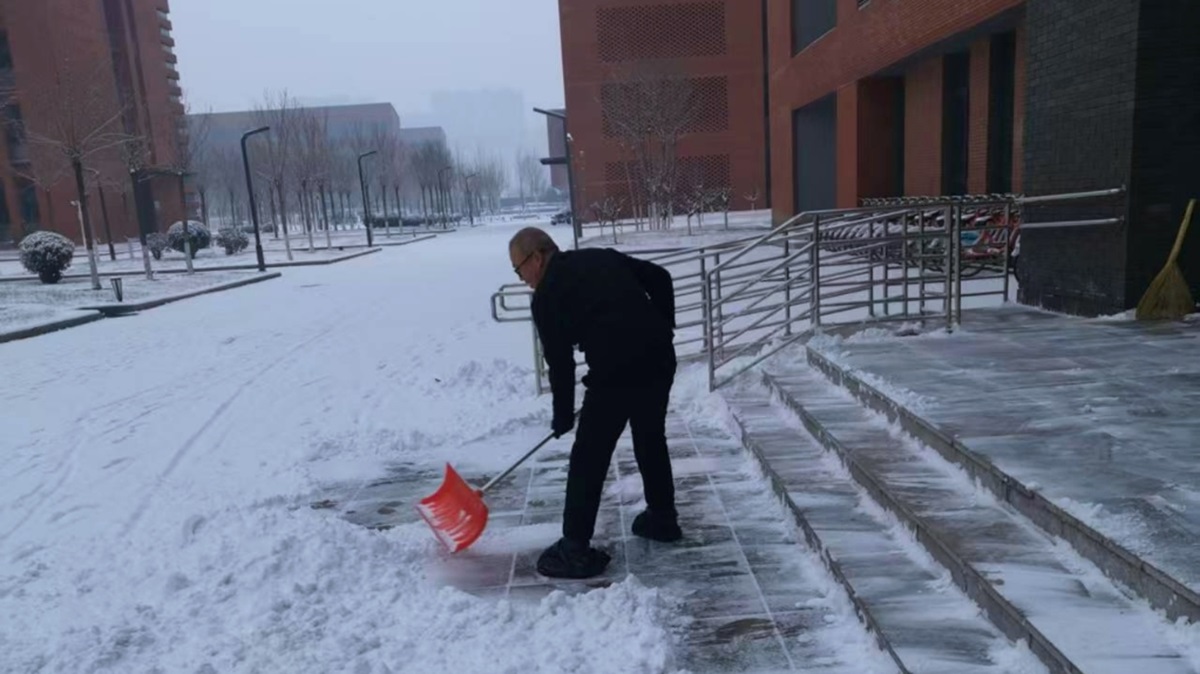 除了及时清扫积雪,后勤保障部还提前筹备了融雪剂、防滑垫等应急物资,在易滑路段均匀铺设,进一步降低出行风险。同时,安排专人对校园内的道路设施、排水系统、供暖设备等进行全面巡查,及时排查并处理因降雪可能引发的各类安全隐患,确保校园基础设施正常运转。后勤人员用汗水融化冰雪,用坚守温暖人心,他们的辛勤付出被师生看在眼里、记在心里,不少师生主动拍摄下这暖心场景,在校园内传递着这份冬日温情。