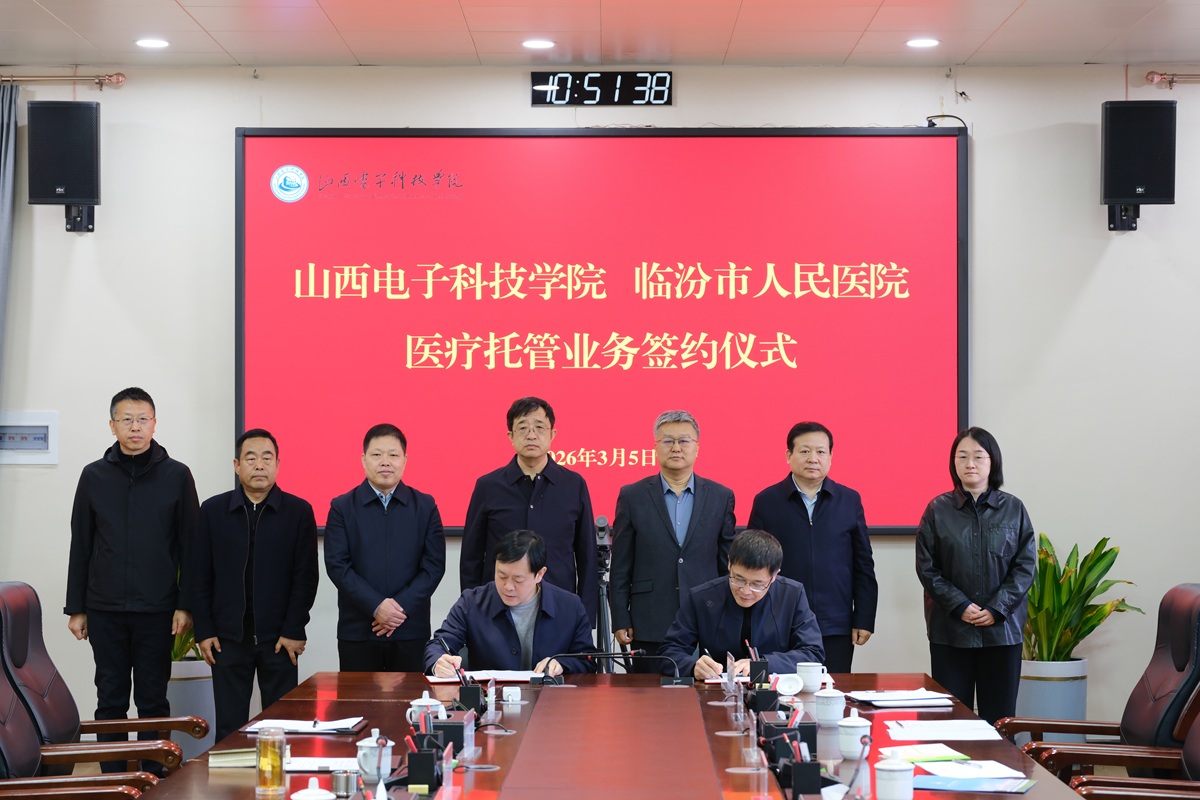 在与会领导共同见证下,我校后勤保障部负责人刘向宾、临汾市人民医院副院长刘晓剑代表双方签署医疗托管合作协议,标志着双方医疗合作进入实质落地阶段。