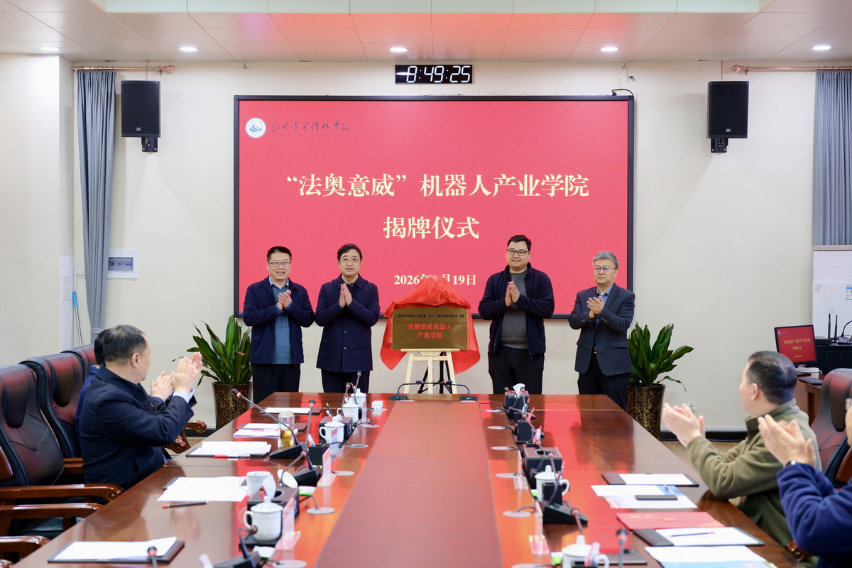 “法奥意威”机器人产业学院的揭牌成立,是我校贯彻落实产教融合、科教融汇国家战略的重要实践,也是深化校企合作、构建协同育人生态的关键举措。学校将以此次合作为契机,牢牢把握应用型办学定位,紧密对接产业需求,深化教育教学改革,努力将“法奥意威”机器人产业学院建设成为集人才培养、技术创新、社会服务于一体的示范性平台,为区域经济转型升级和智能制造产业发展贡献更多山电力量。(李磊/文 李锐/摄)