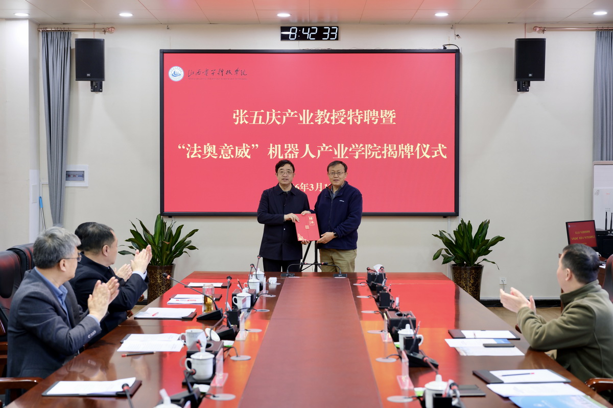 我校举行张五庆产业教授特聘暨“法奥意威”机器人产业学院揭牌仪式