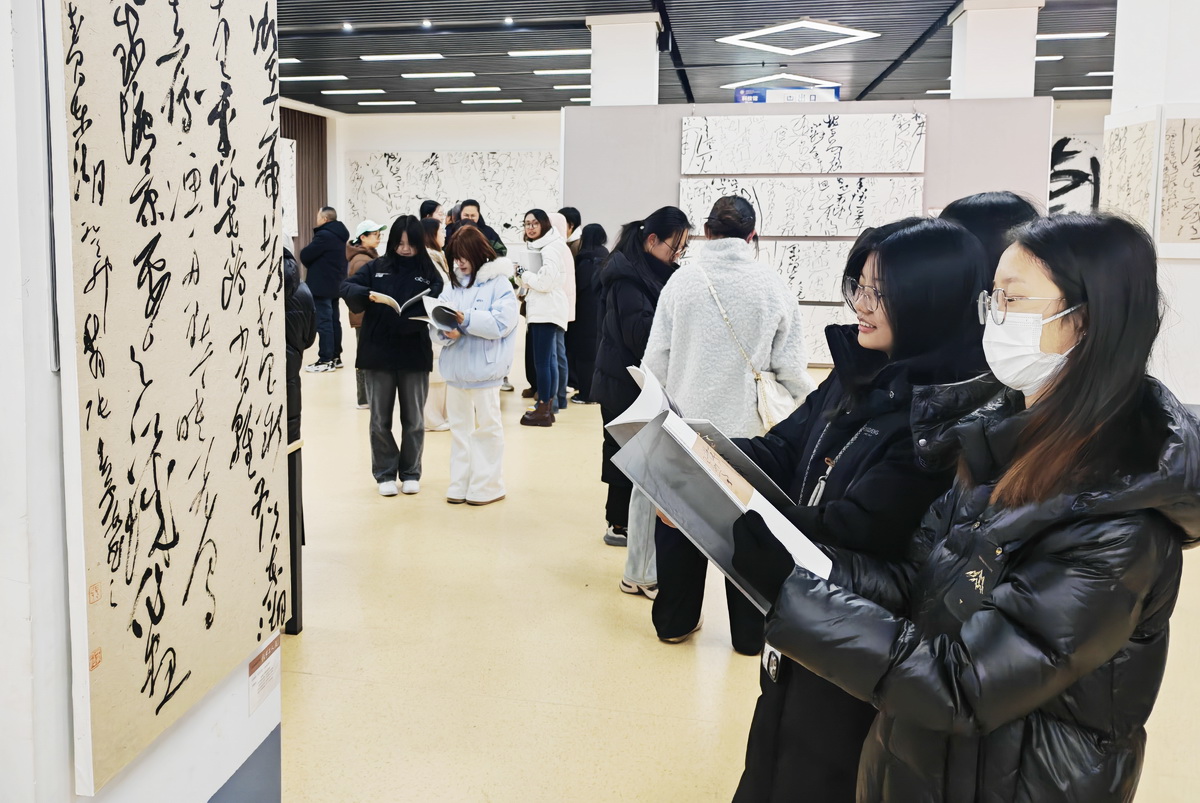 为深化师生对中华优秀传统文化的认知,以艺术实践赋能人才培养,推动产教融合落地见效,12月21日上午,文化遗产与艺术学院组织百余名师生,赴同盛实验中学科技馆参观由临汾市文联主办、王子亭等三位艺术家联袂呈现的“黄河在咆哮,狂草三人展”。活动由韩姣姣、燕胜楠老师带队。