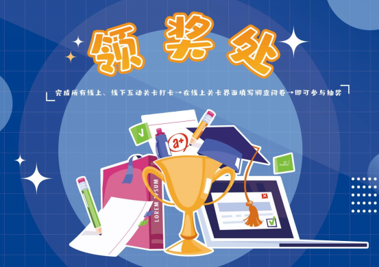 本次活动设置抽奖环节,参与的学生集齐手卡印章且足迹平台关卡打卡完成,最终填写调查问卷后可以在领奖处进行抽奖,我们提供了很多有趣的奖品哦!活动大奖就在结尾处向你挥手!