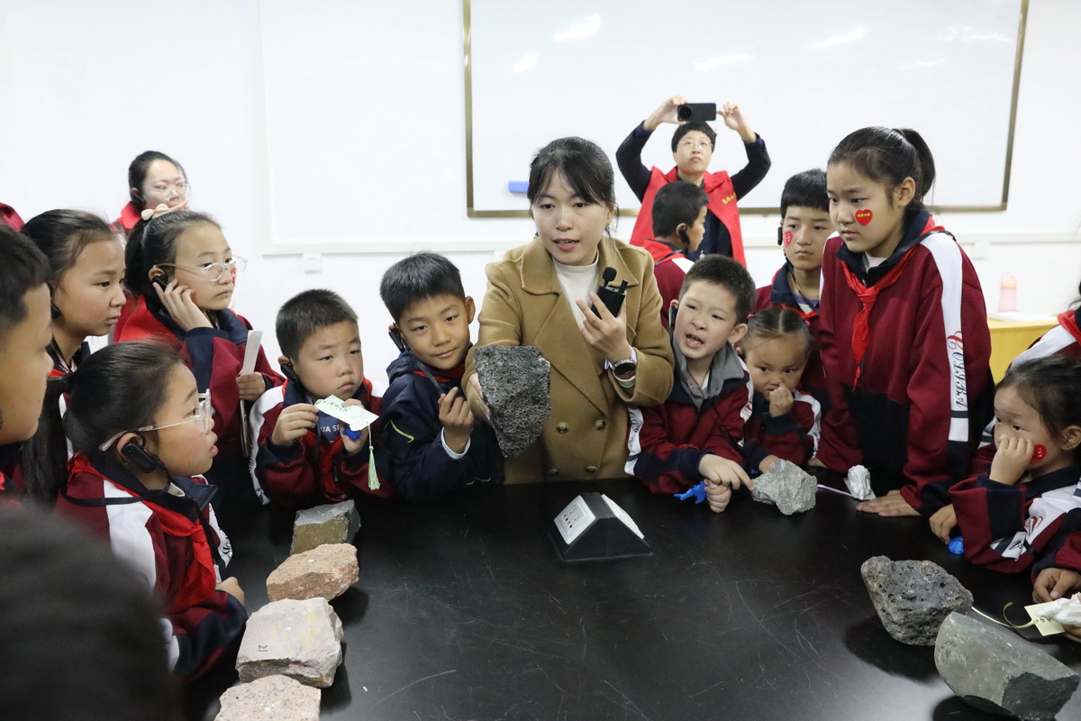 科技体验环节是本次研学的核心亮点。在近万平方米的实训中心,孩子们在专业教师与大学生科技团队的指导下,近距离观察机器人焊接工作站、3D打印机、VR交互设备、GPS无人机等电子科技类设施设备,见证金属材料在数控车床下“变身”精密零件的过程,亲手尝试简单的机器人控制操作,眼中满是对科技的好奇与向往。地球概论实验室里,八大行星运行仪、互动星空仪直观呈现宇宙奥秘;地质地貌实验室的岩石标本、恐龙模型,让孩子们仿佛穿越时空探索地球演变史。“大学的实验室太酷了!我要努力学习,希望将来也能在这样的环境中研究科技!”“没想到平时听到的3D打印、VR这些技术离我们这么近,我以后也要发明好多好玩、有用的科技产品!”活动结束后,孩子们仍意犹未尽,纷纷分享着自己的收获与感悟,言语间满是对科学探索的热情与对未来的憧憬。随行研学的小学老师与家长也表示,这样的研学活动让孩子走出课堂,近距离接触前沿科技,不仅开阔了眼界,更激发了学习兴趣,非常有意义。