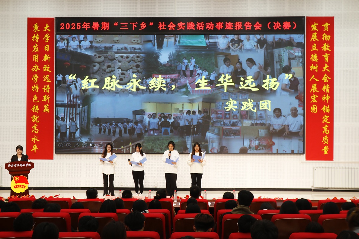 整场报告会气氛热烈高涨,展示内容丰富鲜活,不仅全面呈现了我校学子扎根基层、服务社会、勇于创新的青春风貌,更让“三下乡”的实践精神深入人心。此次“三下乡”社会实践活动虽暂告段落,但青年成长的征程永不止步;这场报告会不是终点,而是我校学子以实践赋能成长的新起点。相信我校青年学子必将带着实践中的收获与感悟,在更广阔的天地间勇毅前行,书写无愧于时代、无愧于青春的精彩篇章!(校团委 供稿)